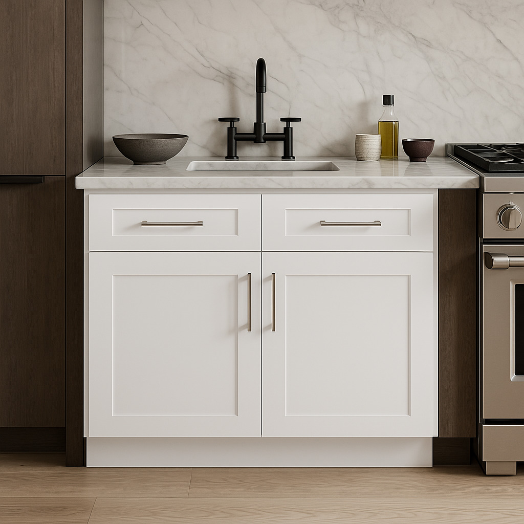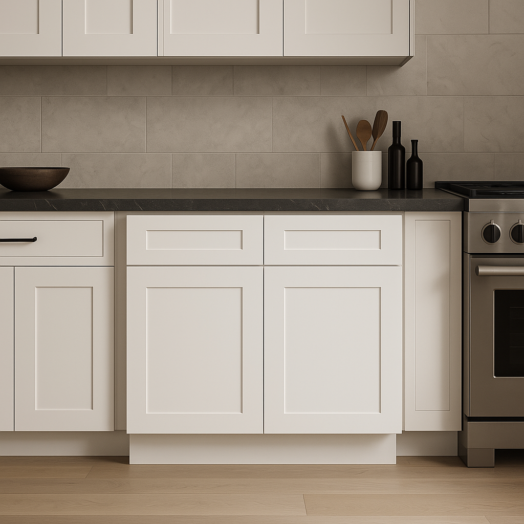- Stylish Design: Shaker-style MDF doors with a recessed center panel and thermofoil finish.
