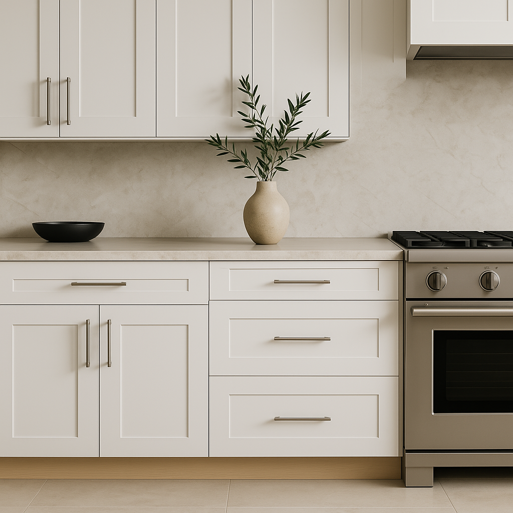 - Stylish Design: Shaker-style doors with square recessed panels and a bright Verona White finish.