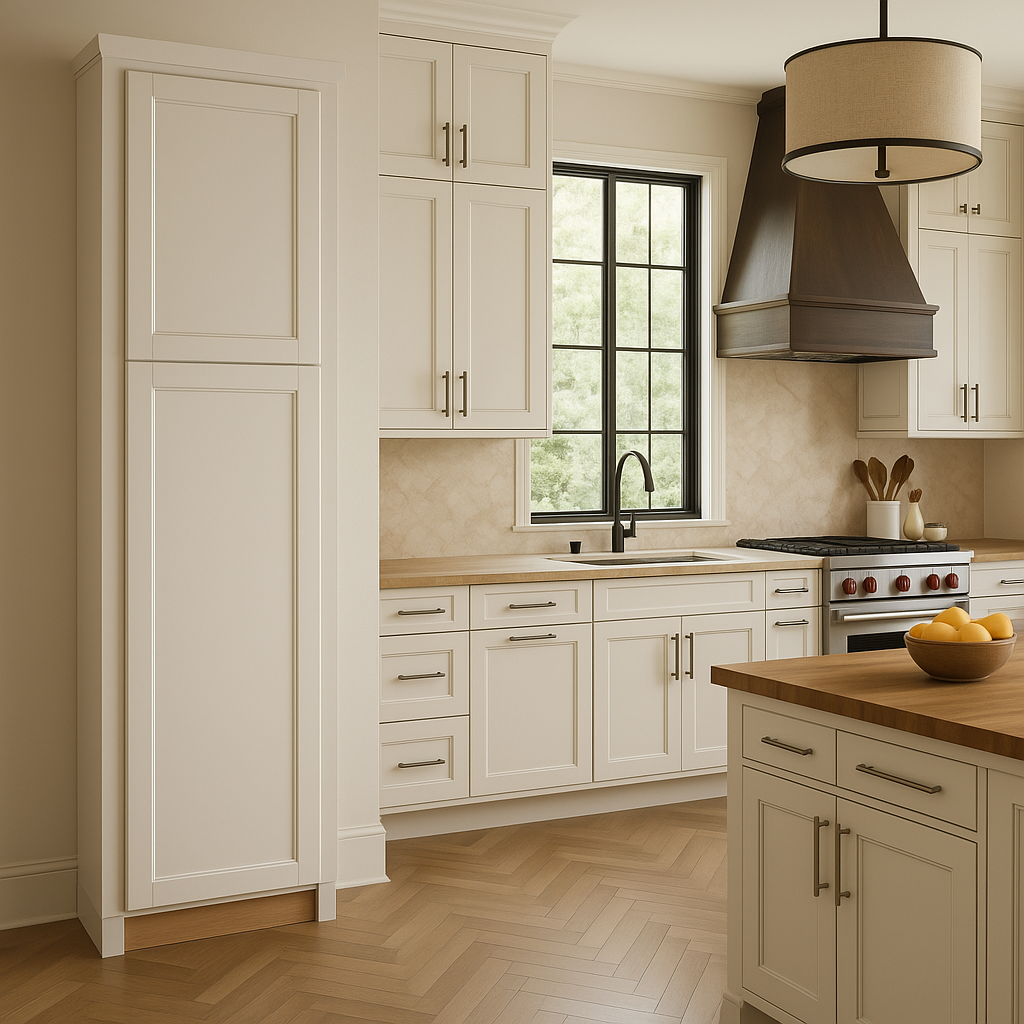 Transform your kitchen with the Richmond Verona White Shaker Pantry Cabinet, a masterpiece of design and functionality. Its clean shaker style and bright thermofoil finish bring a sense of light and space, perfect for modern or classic interiors. Pair it with natural wood countertops for a warm, inviting look, or sleek marble for a contemporary edge. This cabinet is not just storage—it's a statement of refined taste and practical luxury.