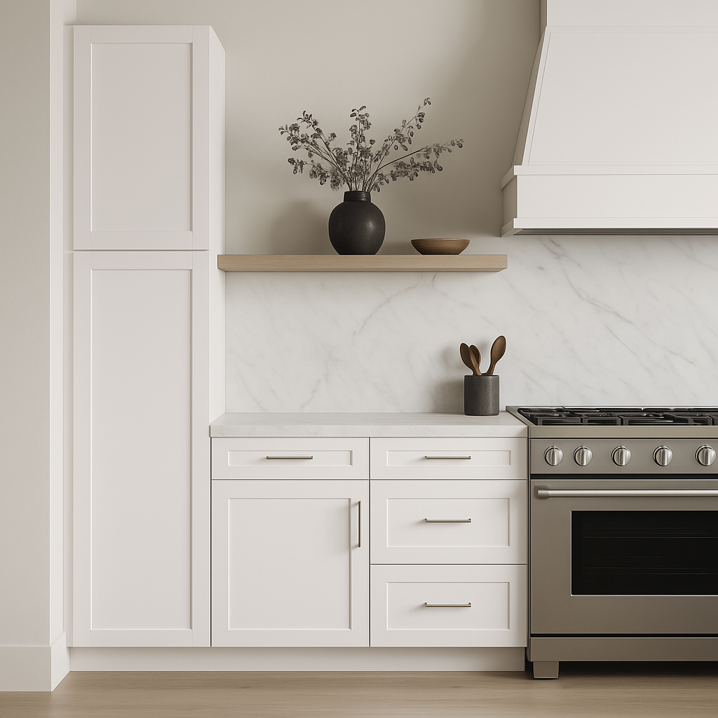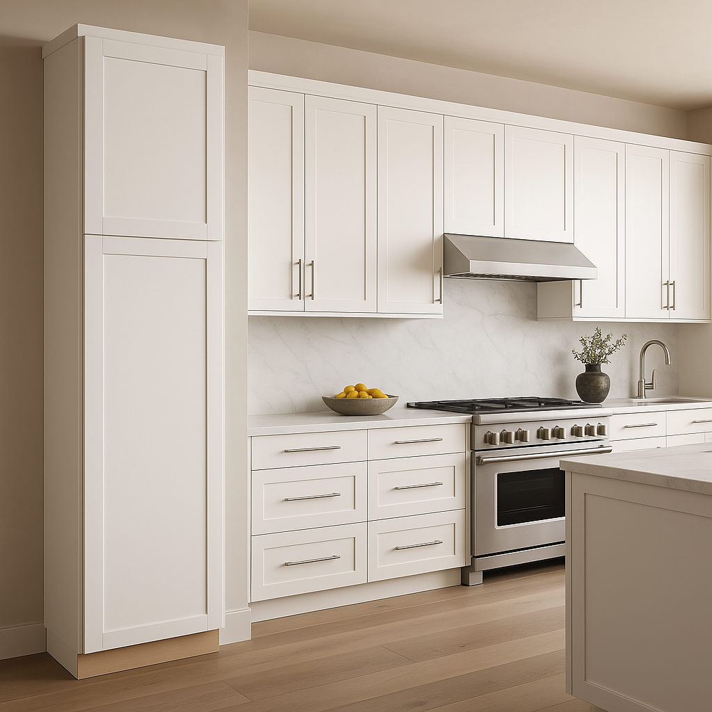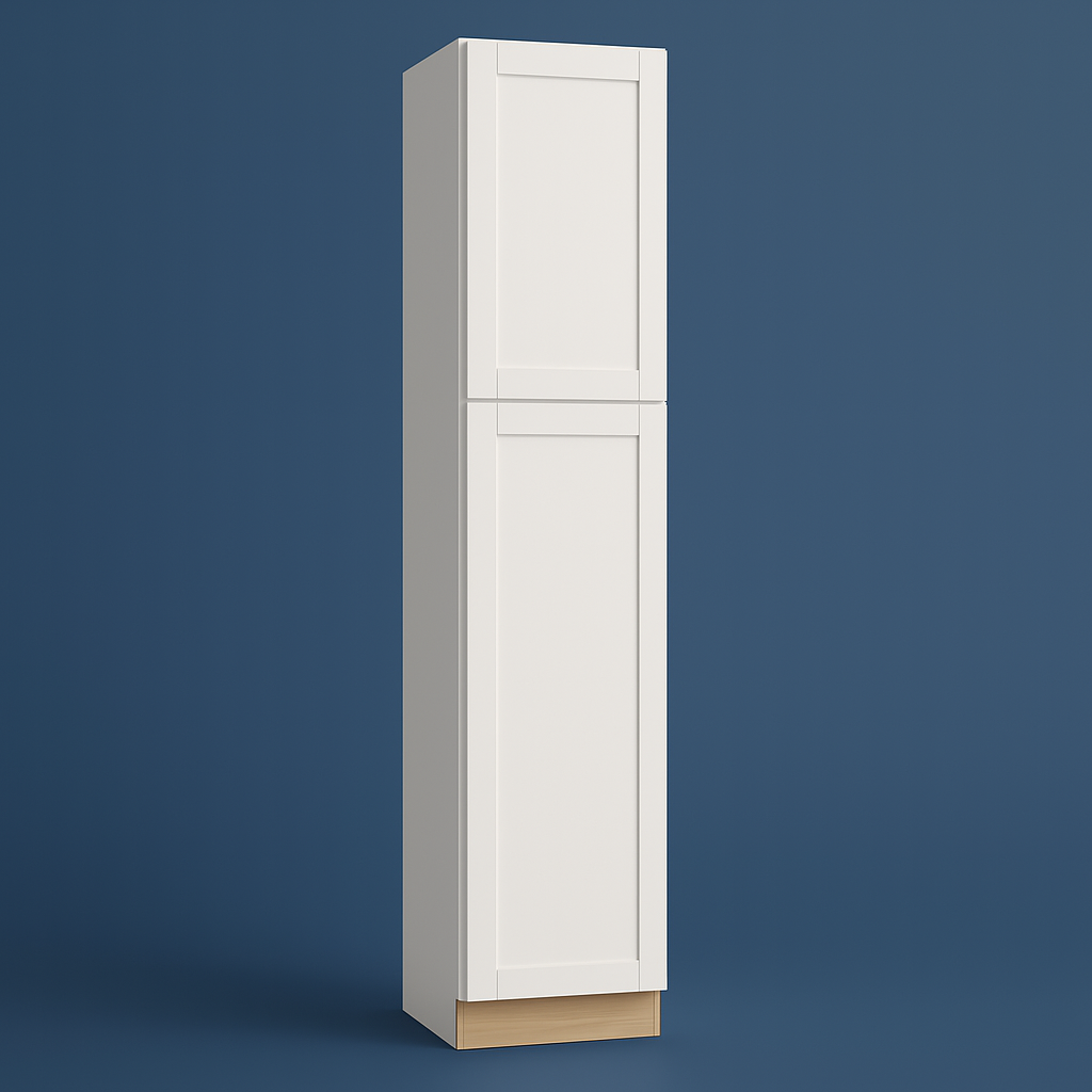 The MILL'S PRIDE Richmond Verona White Shaker Pantry Cabinet combines durable plywood construction with a stylish shaker design. Featuring soft-close doors and adjustable shelves, this cabinet is perfect for organizing your kitchen while adding a touch of elegance.