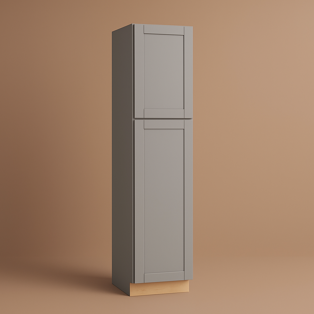 The Richmond Vesuvius Gray Pantry Cabinet by MILL'S PRIDE combines durable plywood construction with a sleek thermofoil finish, offering a stylish and functional addition to any kitchen. Featuring adjustable shelves and soft-close doors, this cabinet is designed for convenience and longevity.