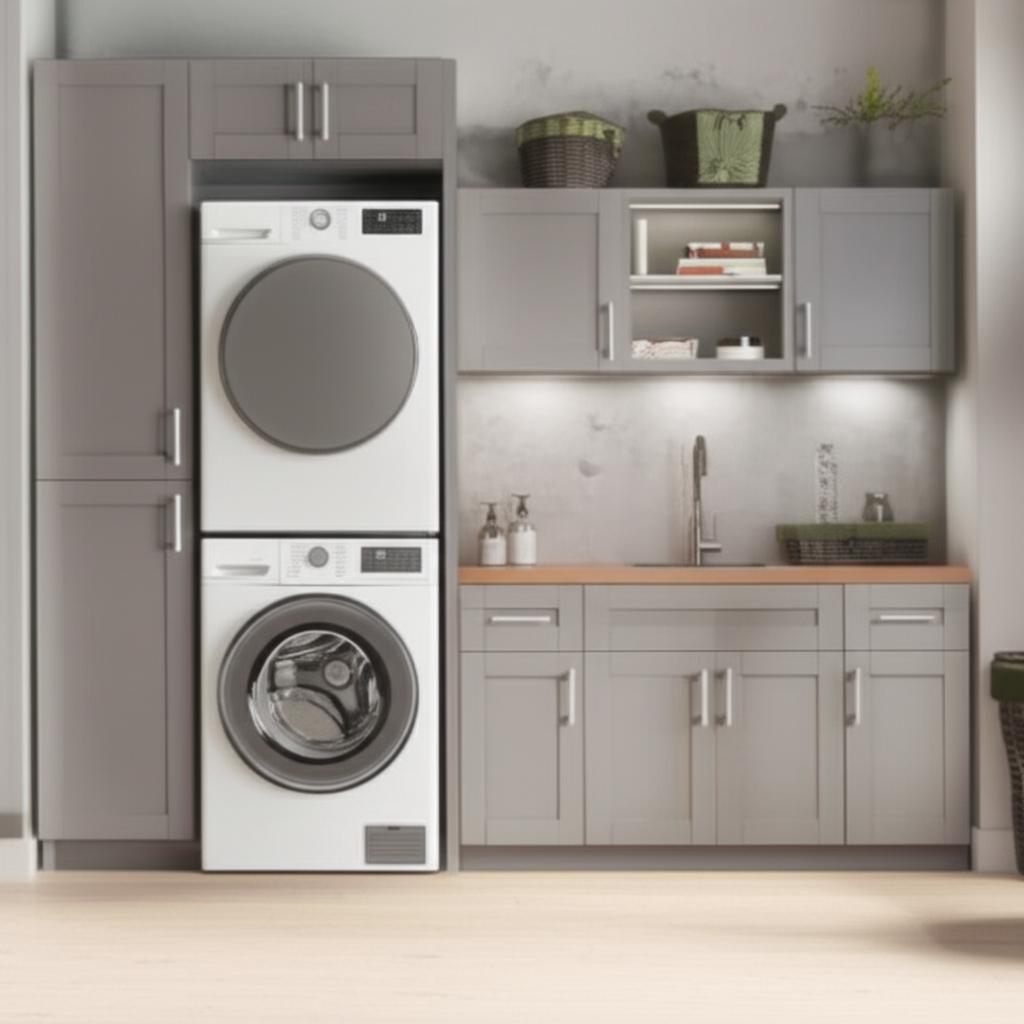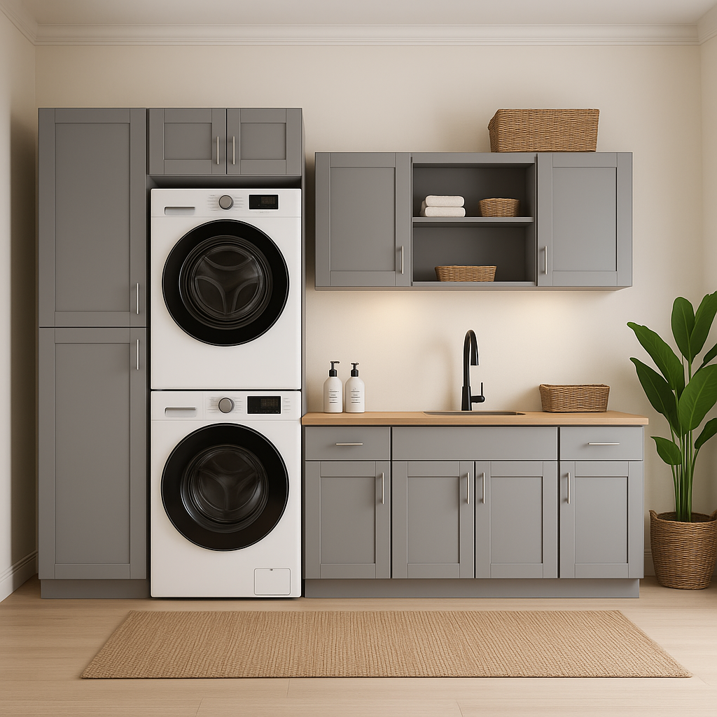 Upgrade your laundry room with the stylish and functional Richmond Vesuvius Gray Cabinet Set today!