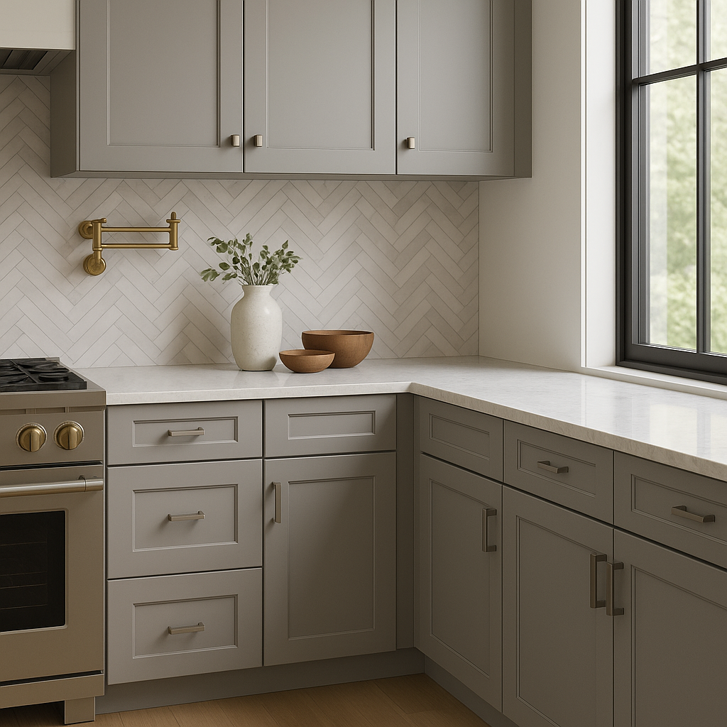 - Stylish Design: Features a Vesuvius Gray thermofoil finish and shaker-style doors.