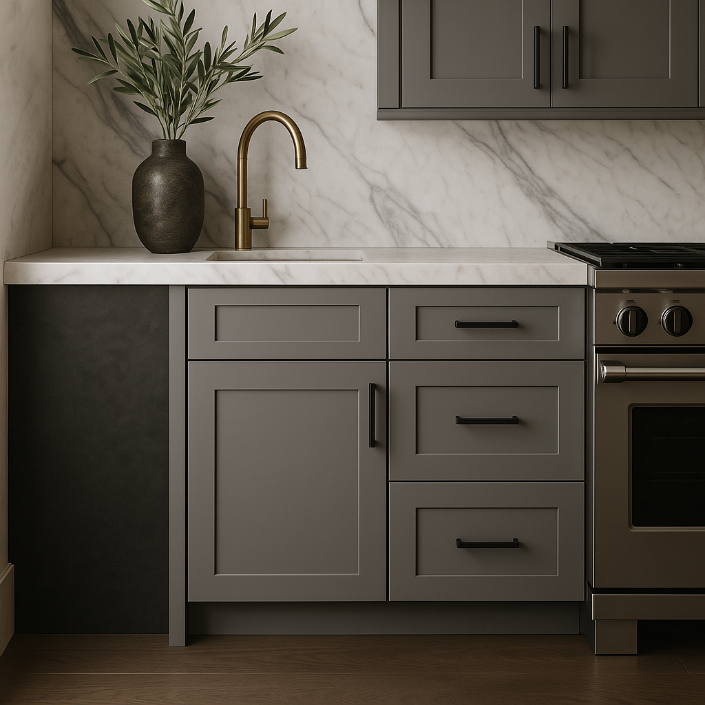 Upgrade your kitchen with the durable and stylish Richmond Vesuvius Gray Shaker Base Cabinet today!