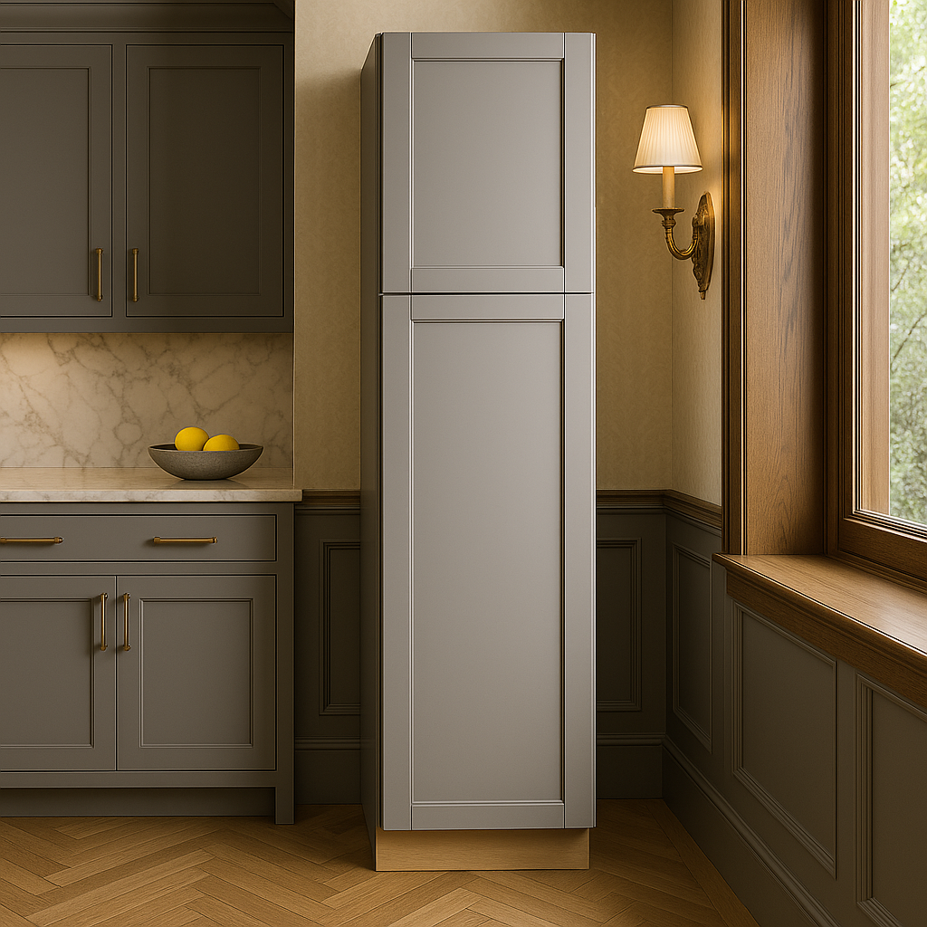 Upgrade your kitchen with the stylish and durable Richmond Vesuvius Gray Shaker Pantry Cabinet today!