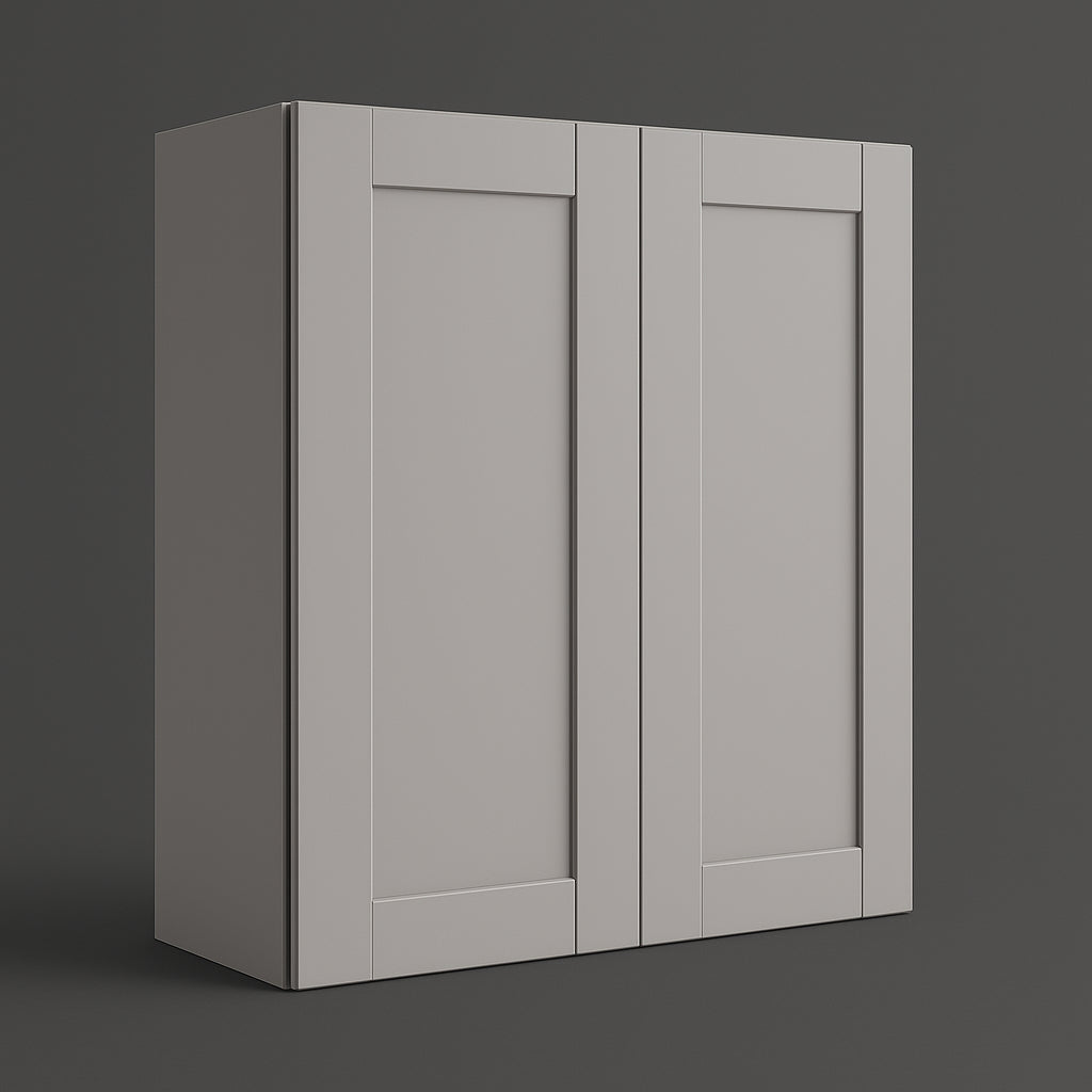 The Richmond Vesuvius Gray Wall Kitchen Cabinet by MILL'S PRIDE combines durable plywood construction with a stylish thermofoil finish. Featuring adjustable shelves and soft-close doors, this cabinet is perfect for modern kitchens.