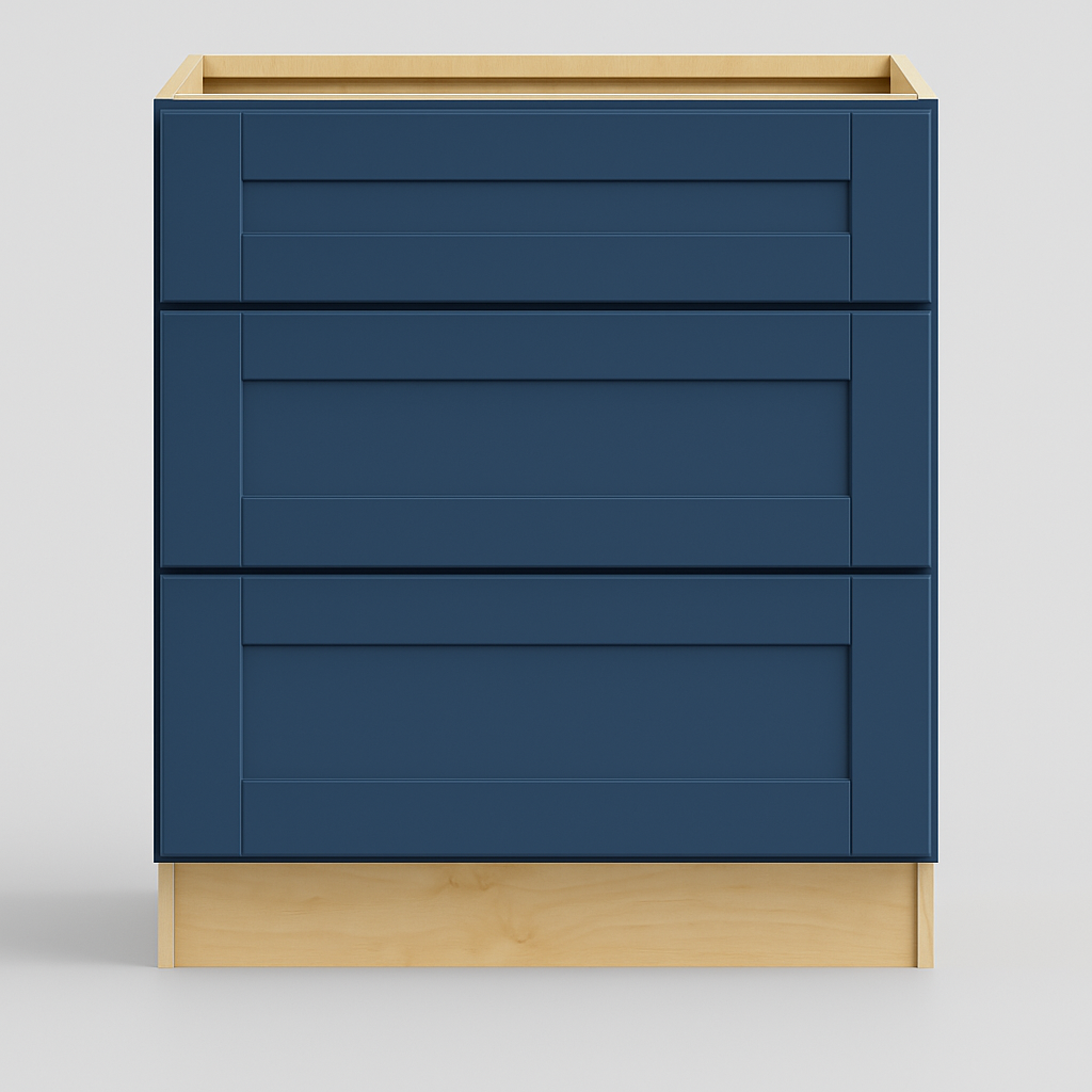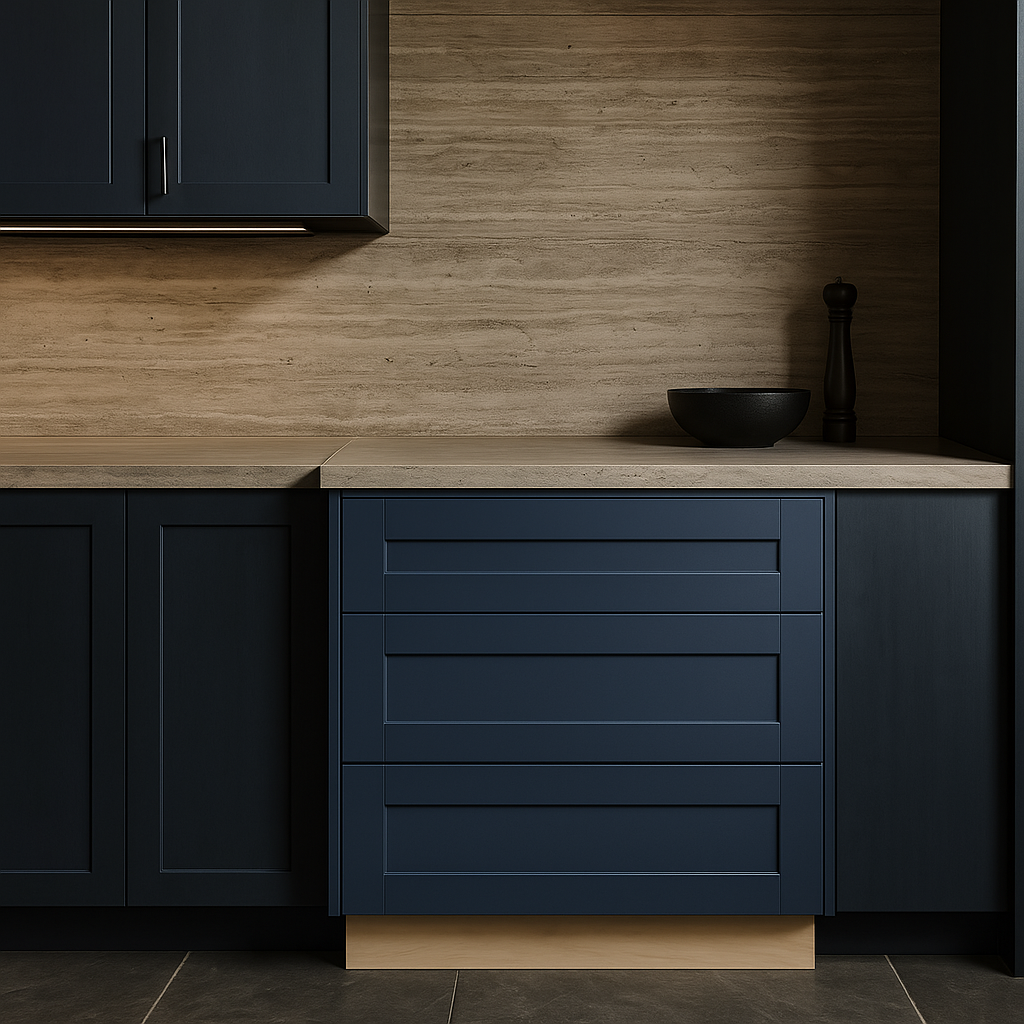 The MILL'S PRIDE Valencia Blue Shaker Kitchen Cabinet combines elegant design with durable plywood construction. Featuring soft-close drawers and a thermofoil finish, this cabinet is perfect for modern kitchens.