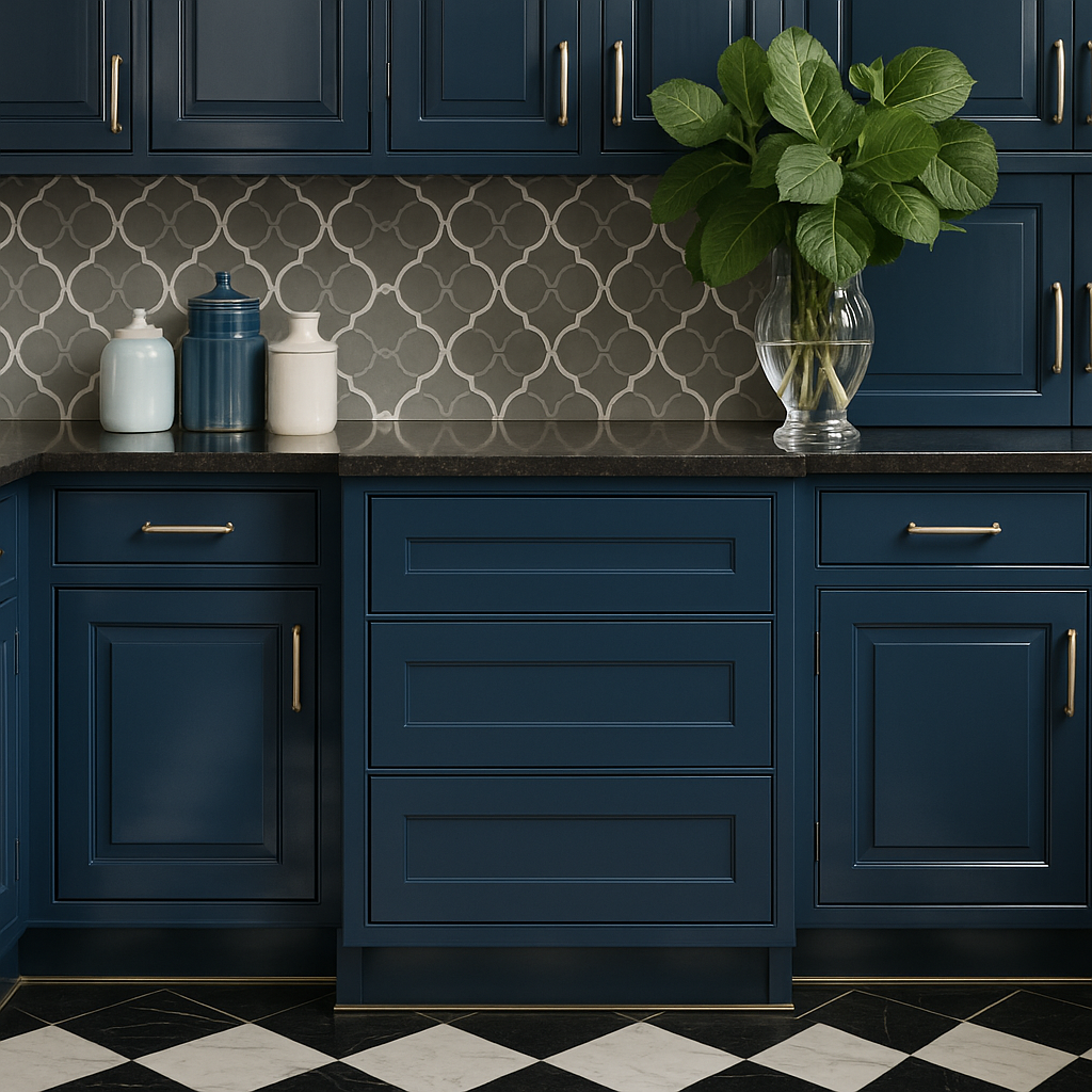 Upgrade your kitchen with the stylish and durable Valencia Blue Shaker Cabinet today!