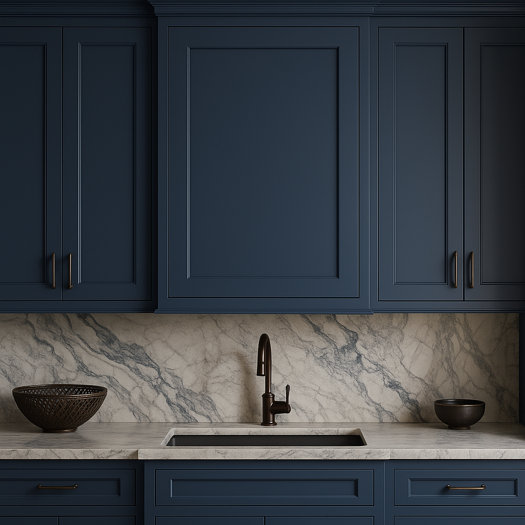 - Thermofoil Finish: Valencia Blue finish with contrasting white back.