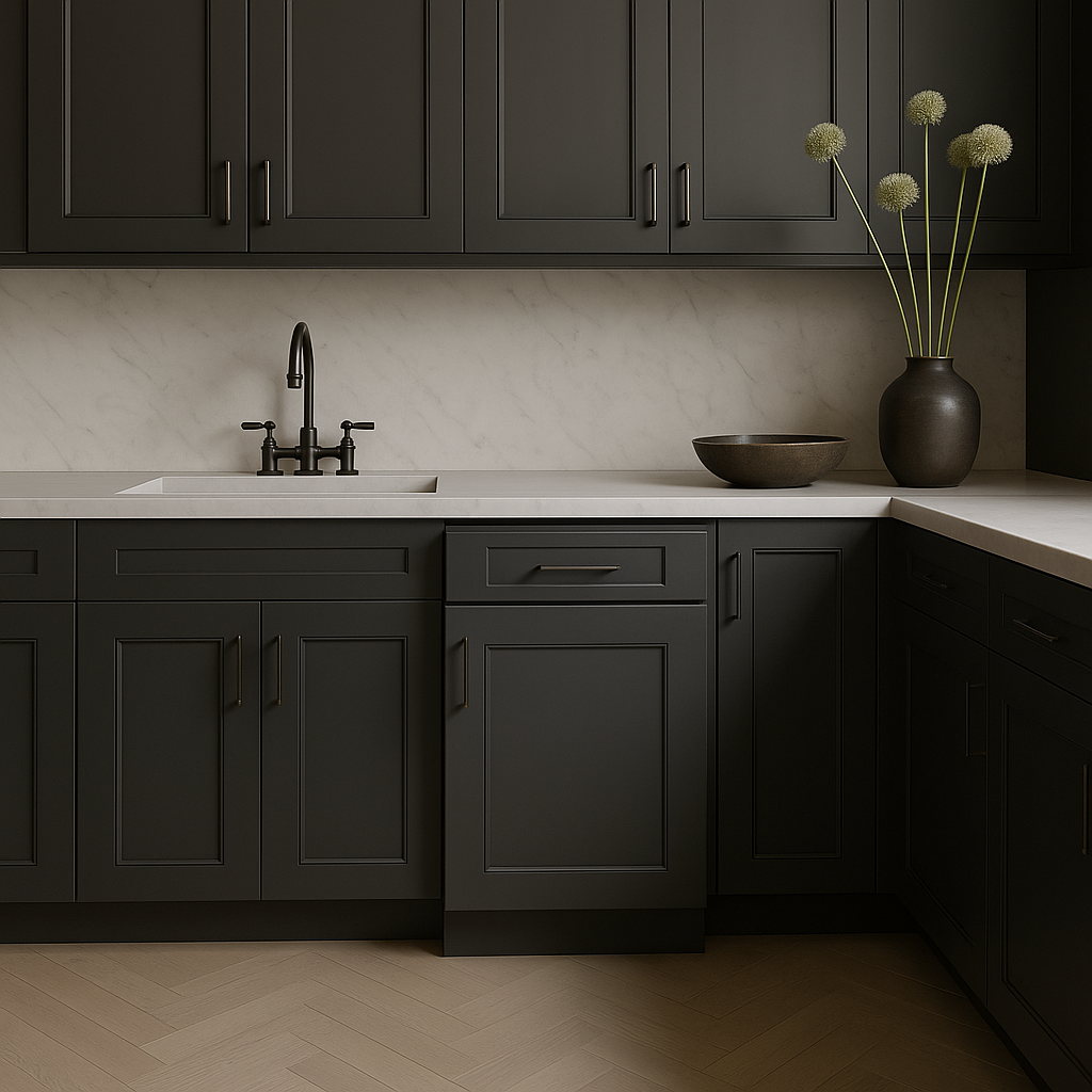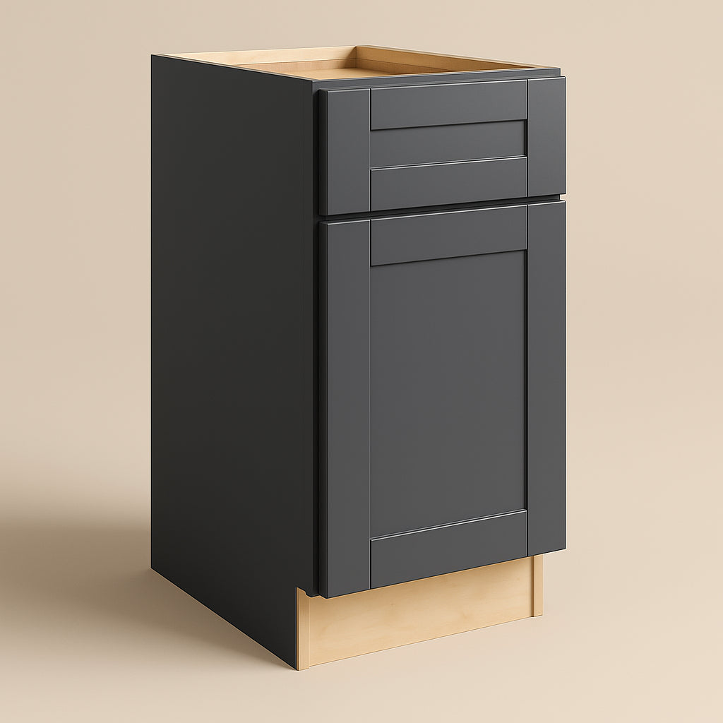 The Richmond Venetian Onyx Shaker Base Cabinet is a masterpiece of modern design and functionality. Its deep gray finish and shaker-style doors bring a sophisticated charm to any kitchen space. Pair it with light countertops for a striking contrast or integrate it into a monochromatic scheme for a seamless look. This cabinet is not just a storage solution; it's a statement piece that transforms your kitchen into a haven of style and practicality.