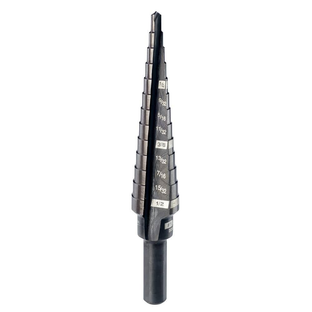 Milwaukee #1 Black Oxide Step Drill Bit, 1/8 in. – 1/2 in., 1/32 in. Increments (13 Steps)