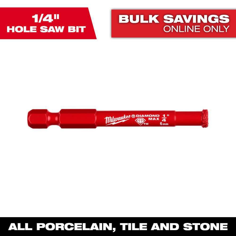 Milwaukee 1/4 in. Diamond MAX Hole Saw Bit, Hex Shank