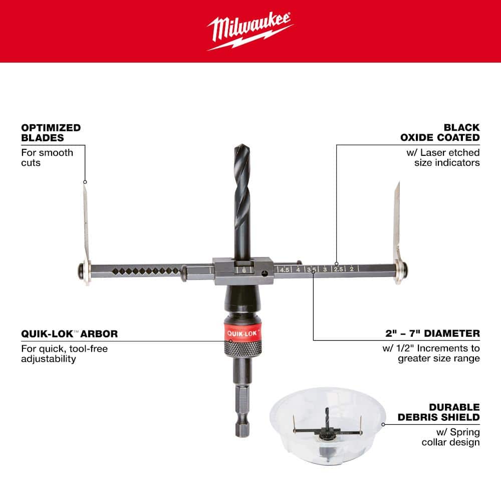 Milwaukee 2 in. to 7 in. Adjustable Hole Saw Cutter, Black Oxide, QUIK-LOK Arbor