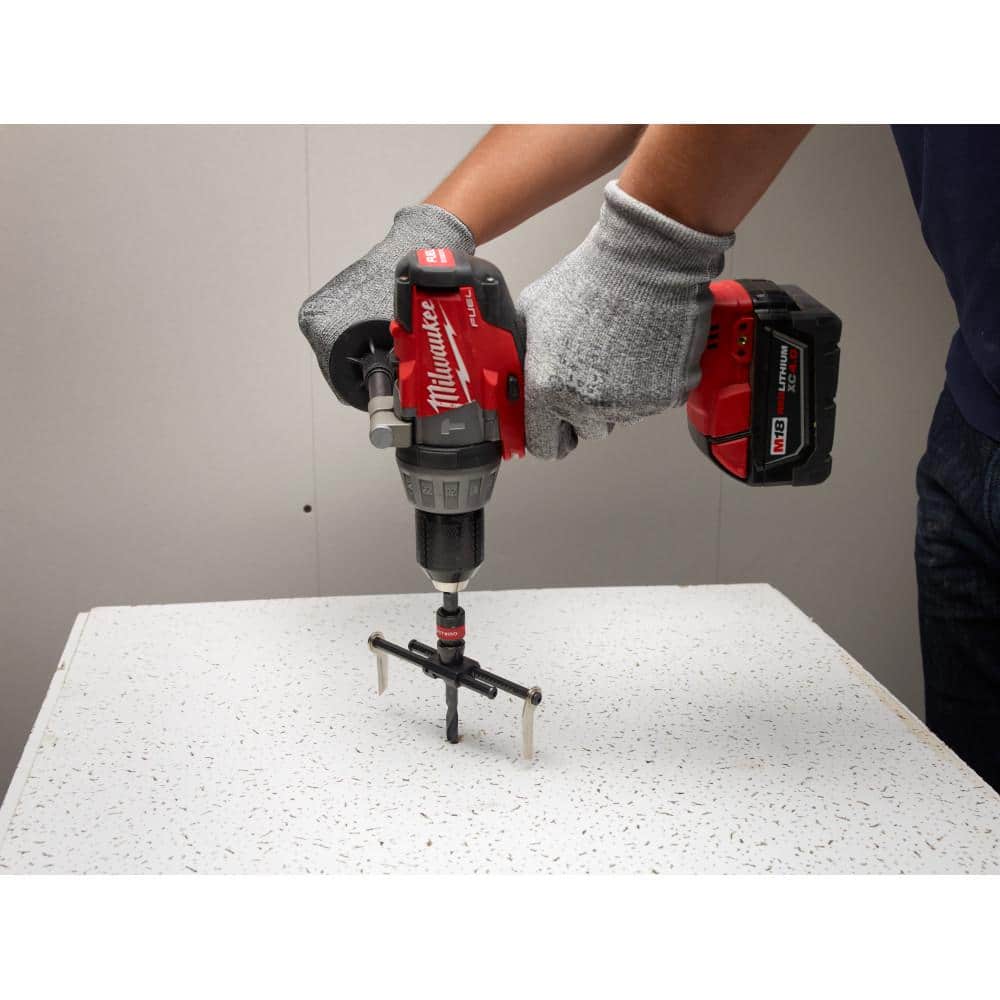 This Milwaukee adjustable hole cutter delivers clean, precise holes in drywall and ceiling tile with a wide 2 to 7 inch range. The QUIK-LOK arbor enables tool-free size changes, while black oxide coated blades with laser-etched indicators and a durable debris shield ensure smooth cuts and a cleaner workspace.