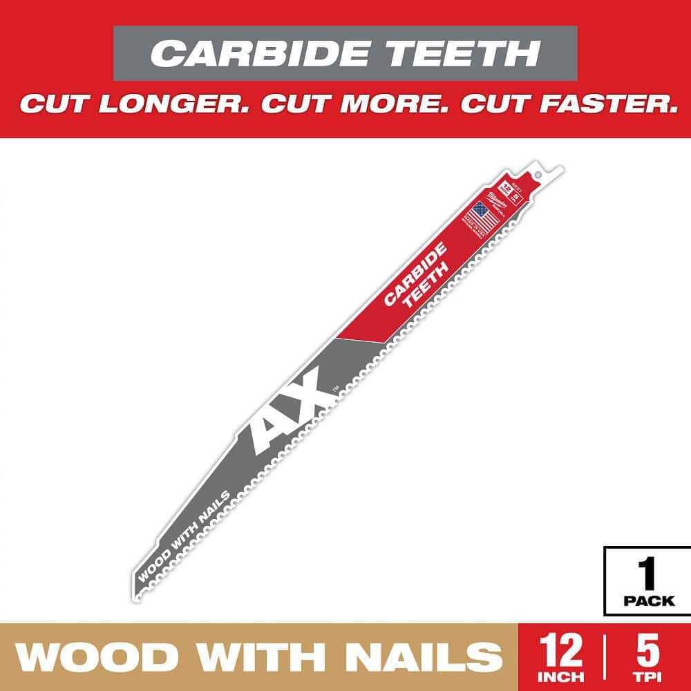 Milwaukee 12 in. 5 TPI AX Carbide Teeth Demolition Nail-Embedded Wood SAWZALL Reciprocating Saw Blade (1-Pack)