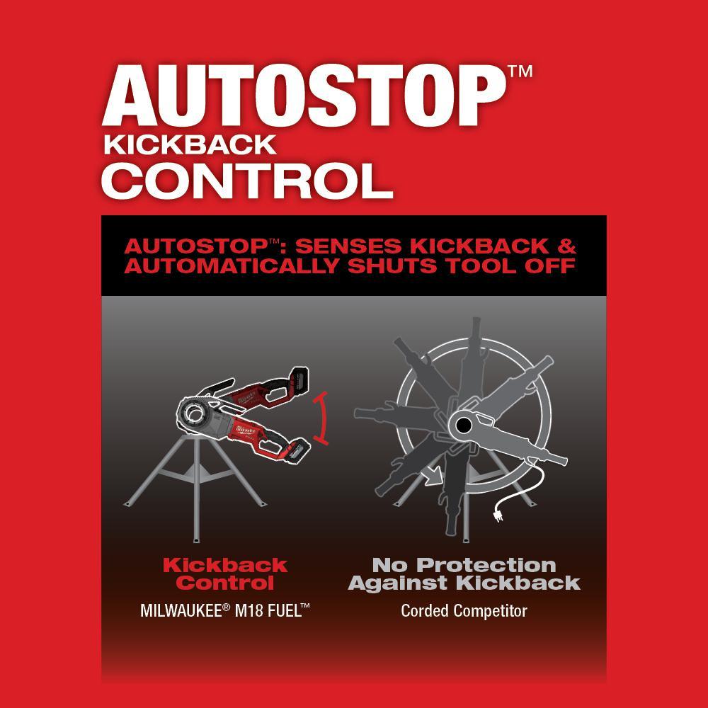 • Includes: (1) M18 fuel pipe threader with 1-key, (1) threading support arm, (1) carrying case, (1) 2780-20 M18 FUEL 4-1/2 in. / 5 in. grinder with paddle switch (tool-only)
