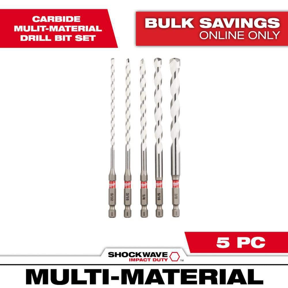 Milwaukee SHOCKWAVE Carbide Multi‑Material Drill Bits Set, 5-Piece (5/32, 3/16, 1/4, 5/16, 3/8 in.)