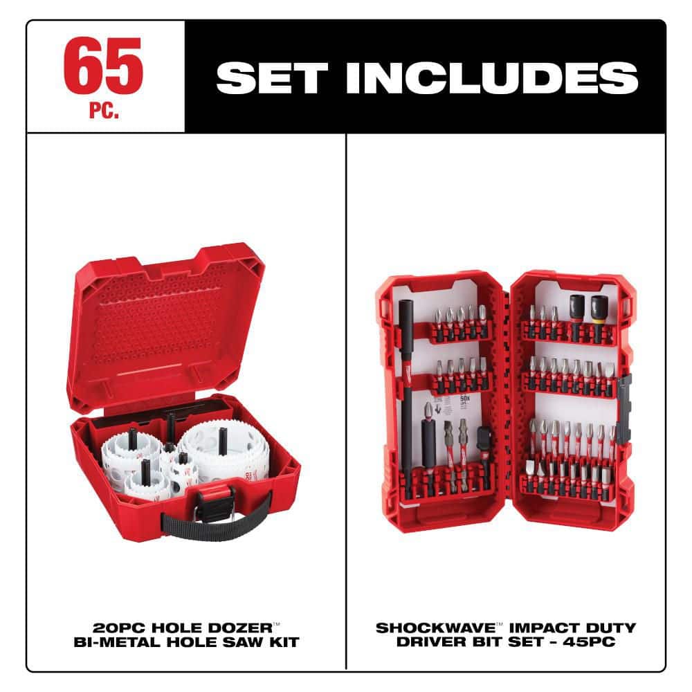Milwaukee HOLE DOZER Bi‑Metal Hole Saw & SHOCKWAVE Impact Duty Driver Bit Set, 65‑Piece