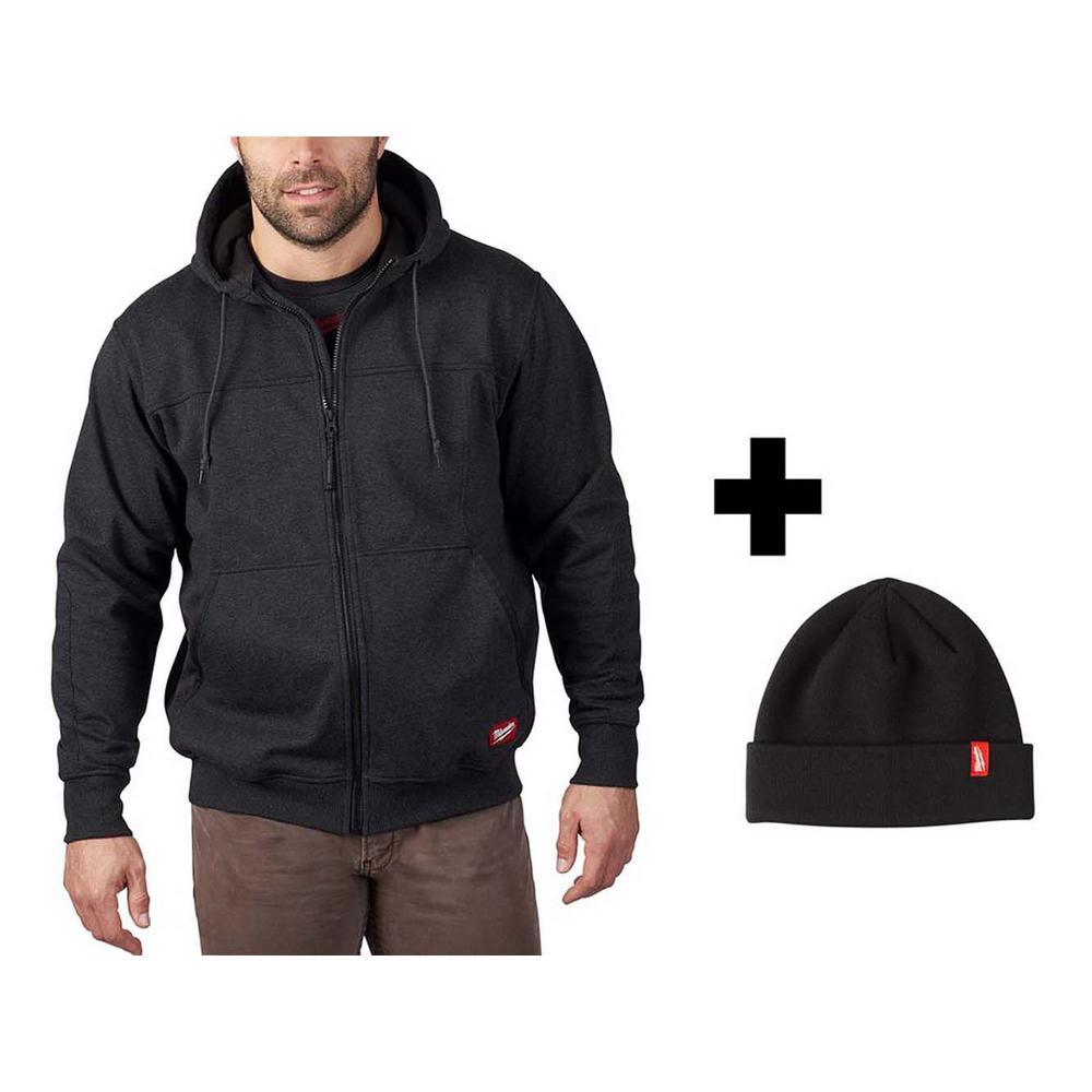 Milwaukee Men's Small Black No Days Off Hooded Sweatshirt with Black Cuffed Knit Hat