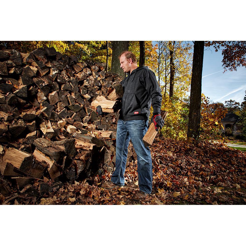 Stay comfortable and dry year-round in the Milwaukee NO DAYS OFF Hooded Sweatshirt. A comfortable fleece lining combined with wind and water resistance makes this the perfect choice for laying in any season. The fitted hood can be worn under a hard hat and an extended neck and interior storm flap offer superior protection from rain and snow. Durable polyester body material and double layer reinforcement of pocket edges and forearms extend product life even in demanding jobsite environments. Built for all conditions, the NO DAYS OFF Hooded Sweatshirt fights the rain when worn as an outer shell and provides wind protection and insulation when used as a versatile layer in extreme cold. Our cuffed beanie hats features a heavier yarn weight to block wind and provide you with an extra layer of warmth in cold weather conditions. This Milwaukee beanie is made from a durable 98% polyester/2% spandex mix that resists snagging. The cuffed knit beanie manages moisture to help prevent sweating and overheating. This warm winter hat is intended for cold weather use to keep you comfortable on the jobsite or during outdoor activities.