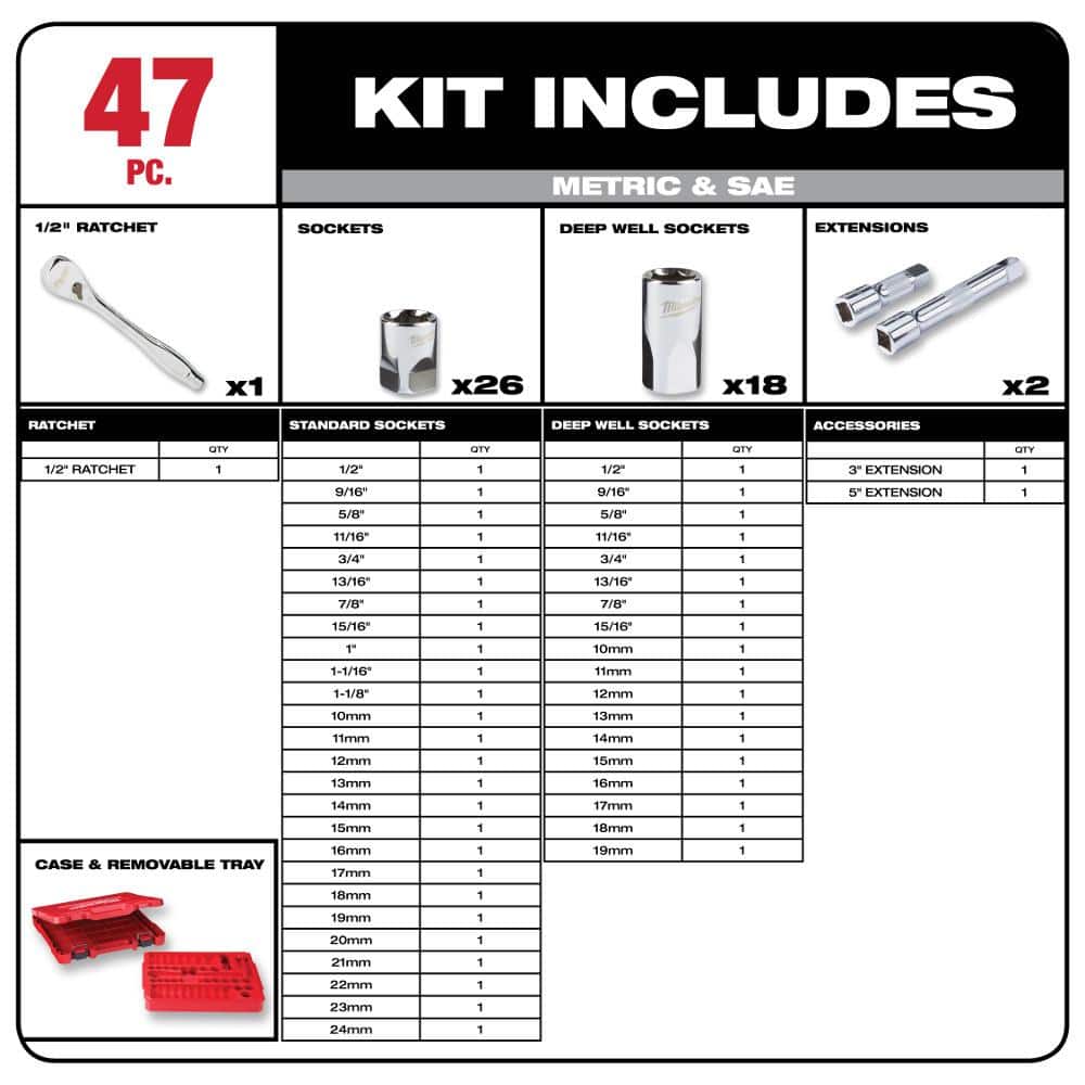 47-Pc 1/2 in. Drive SAE/Metric Ratchet & Socket Set with PACKOUT 2-Drawer Box