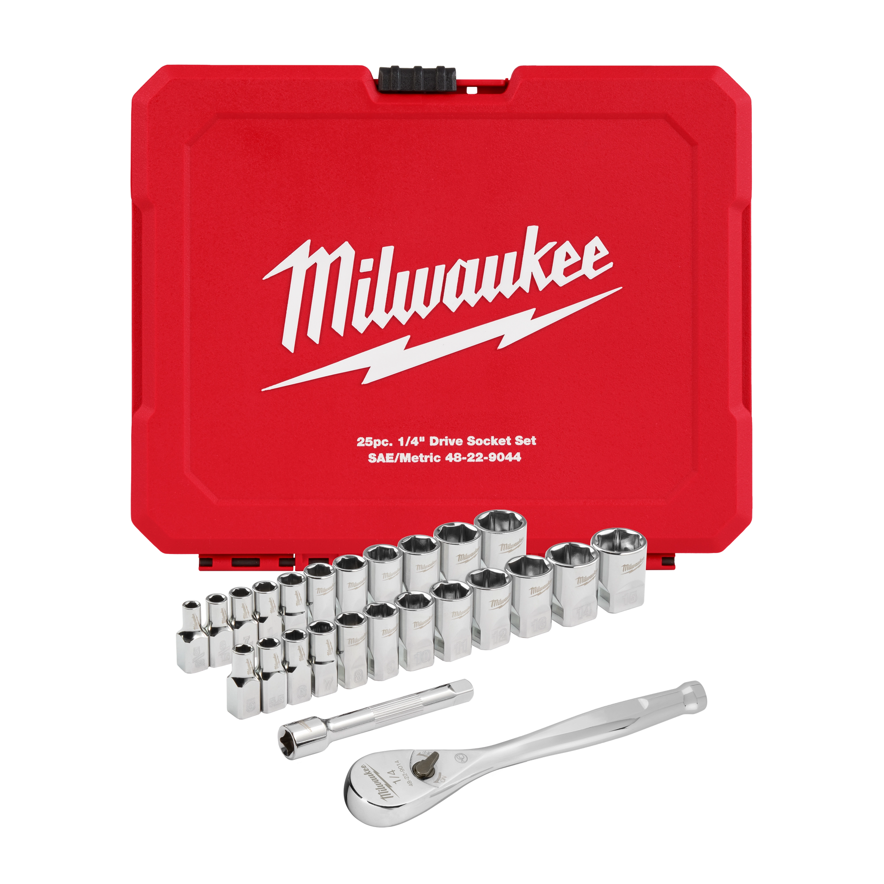 Milwaukee 1/4 in. Drive SAE/Metric Ratchet & Socket Mechanics Tool Set, 25-Piece