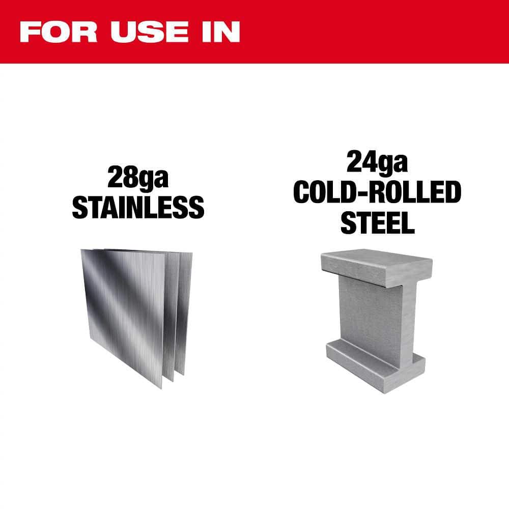 • Metal Cutting Capacity: Cuts 24-ga cold-rolled steel and 28-ga stainless steel
