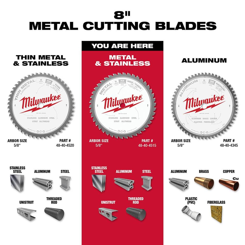 Milwaukee 8 in. x 42-Tooth Carbide Metal & Stainless Cutting Circular Saw Blade, 5/8 in. Arbor