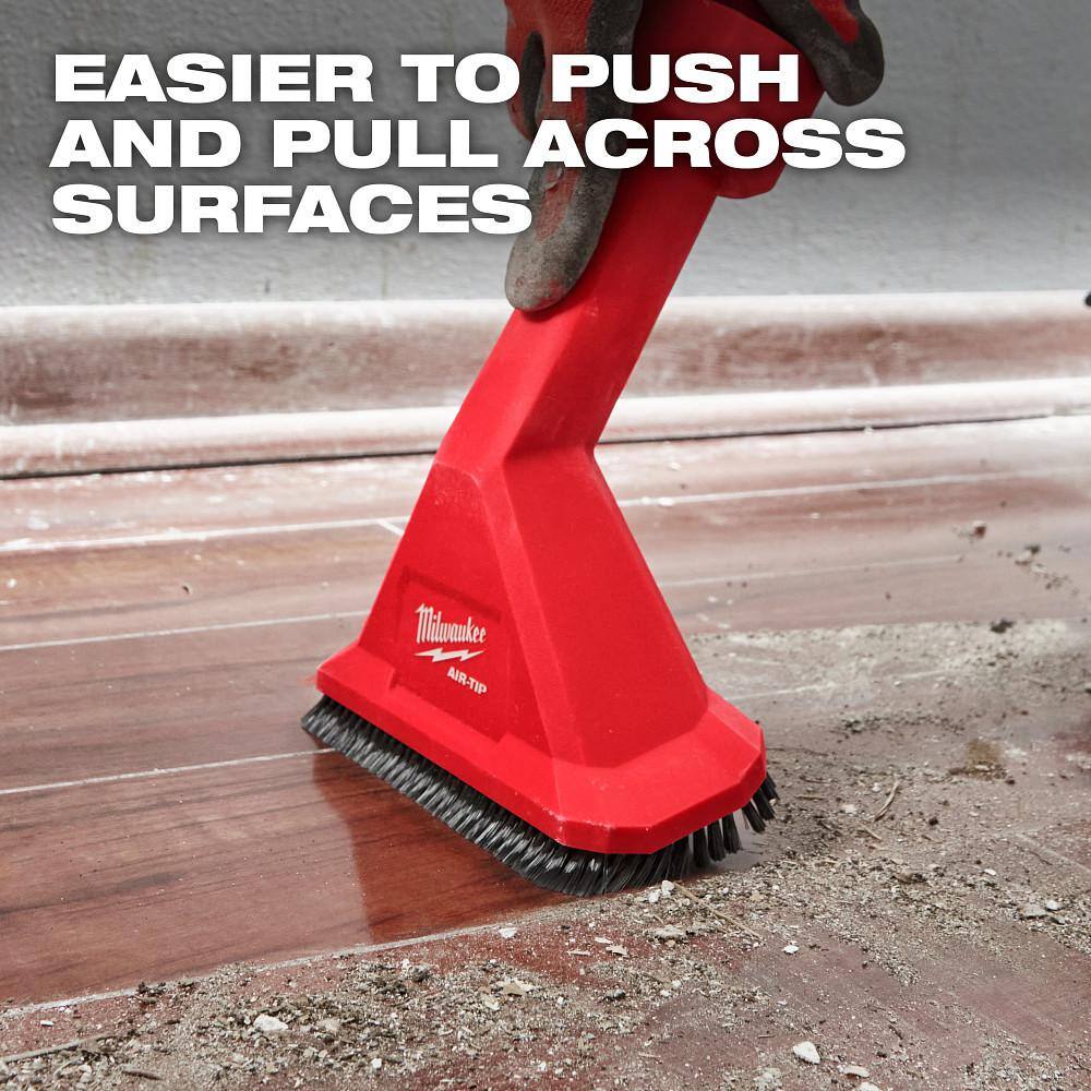 This Milwaukee AIR-TIP rocking utility nozzle speeds up handheld cleanup with a beveled, rocking design and integrated agitating brushes. It fits most wet/dry vacuums with 1-1/4 in., 1-7/8 in., and 2-1/2 in. hoses for smooth forward and backward passes without sticking.
