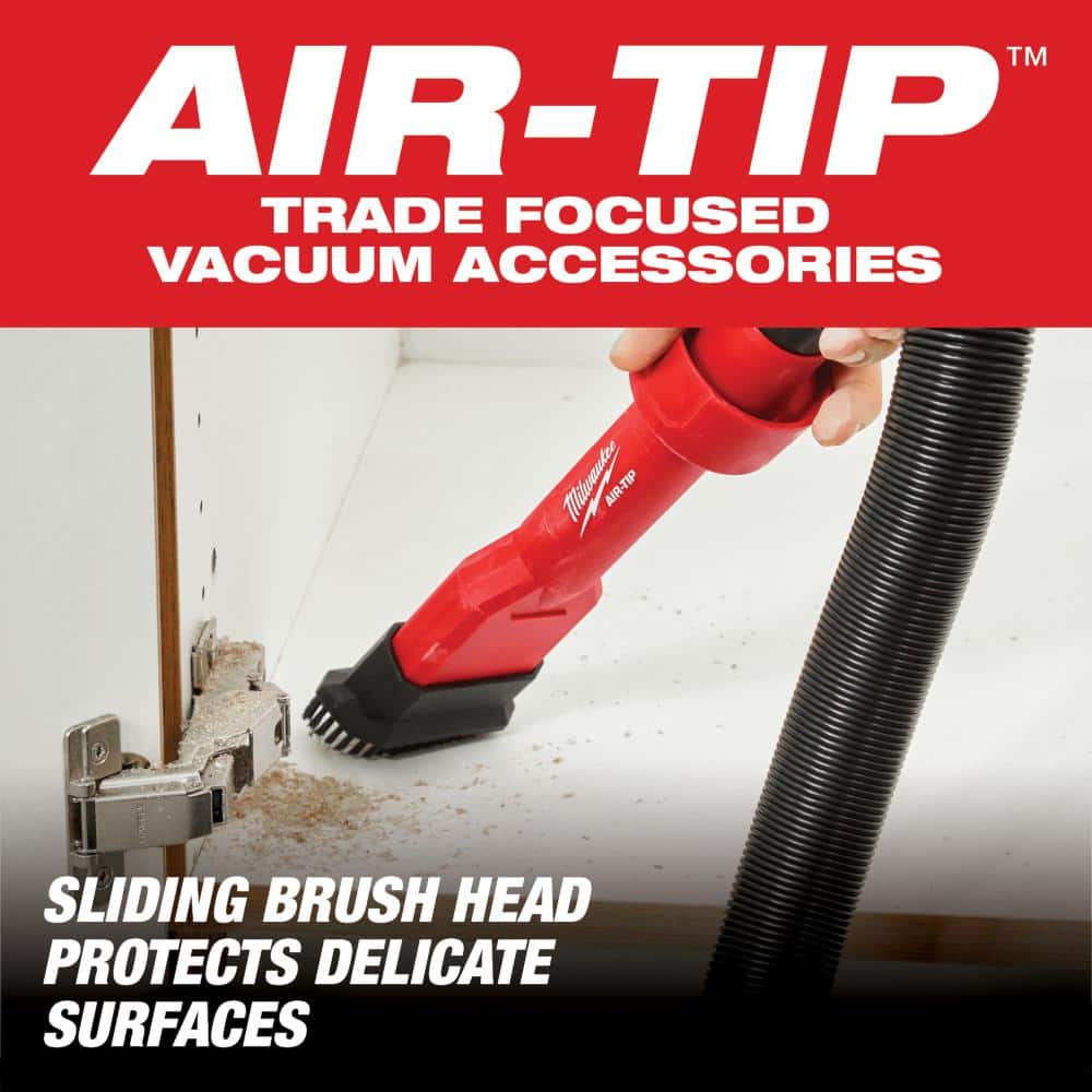 This Milwaukee AIR-TIP kit pairs a rocking utility nozzle with a 2‑in‑1 sliding-brush tool to make handheld cleanup faster on a wide range of surfaces. It fits 1-1/4 in., 1-7/8 in., and 2-1/2 in. hoses across most shop vacuums and features agitating bristles that won’t mar delicate finishes.