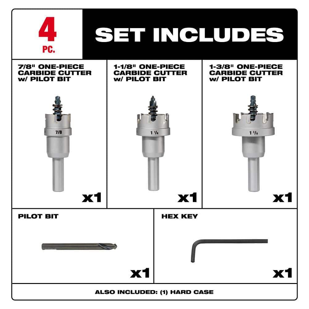 Milwaukee Carbide Hole Cutter Kit, 4-Piece (7/8 in., 1-1/8 in., 1-3/8 in.)