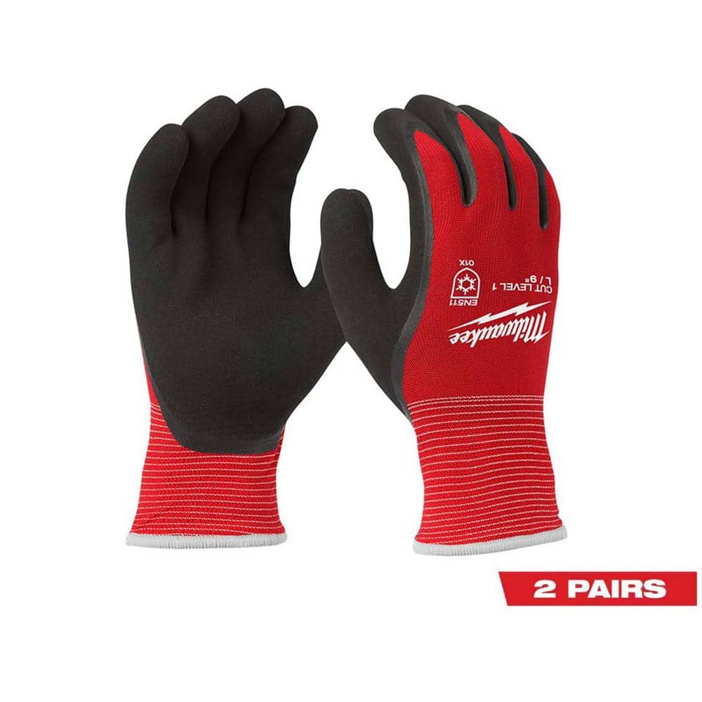 Milwaukee Large Red Latex Level 1 Cut Resistant Insulated Winter Dipped Work Gloves (2-Pack)