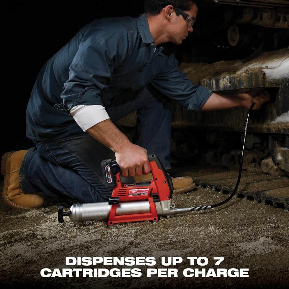 • High-Pressure Greasing: Grease gun delivers more than 8,000 PSI; up to 7 cartridges per charge