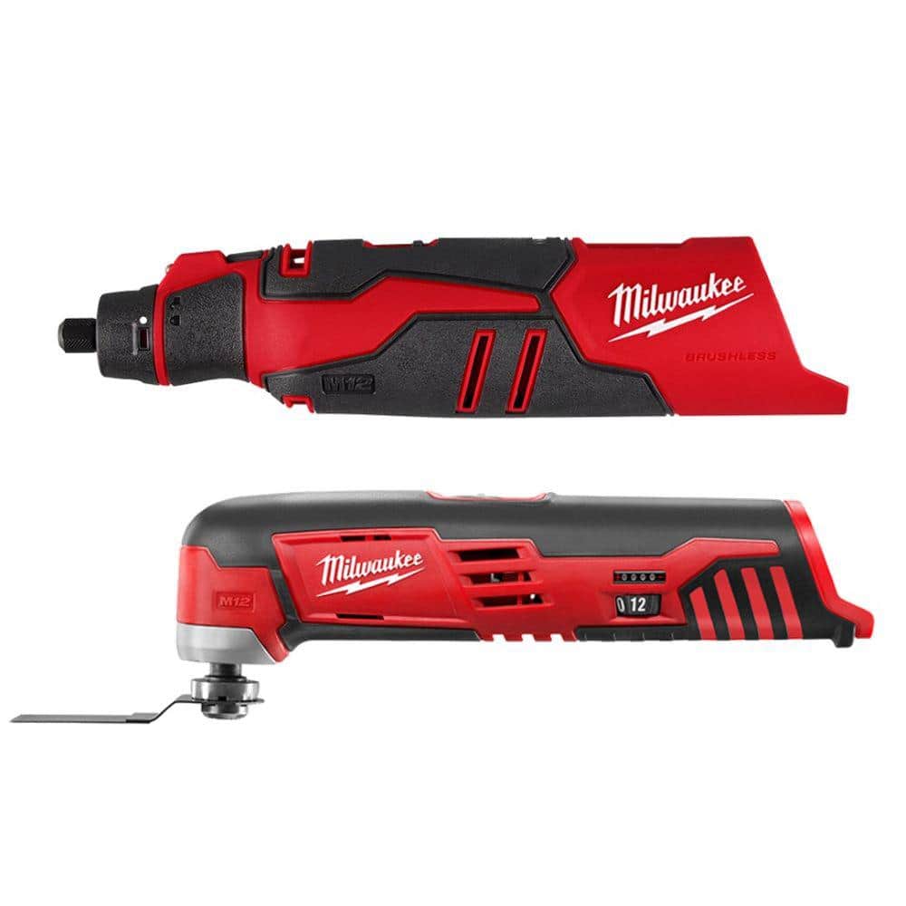 Milwaukee M12 12V Lithium-Ion Cordless Brushless Rotary Tool with M12 Oscillating Multi-Tool (Tool-Only)
