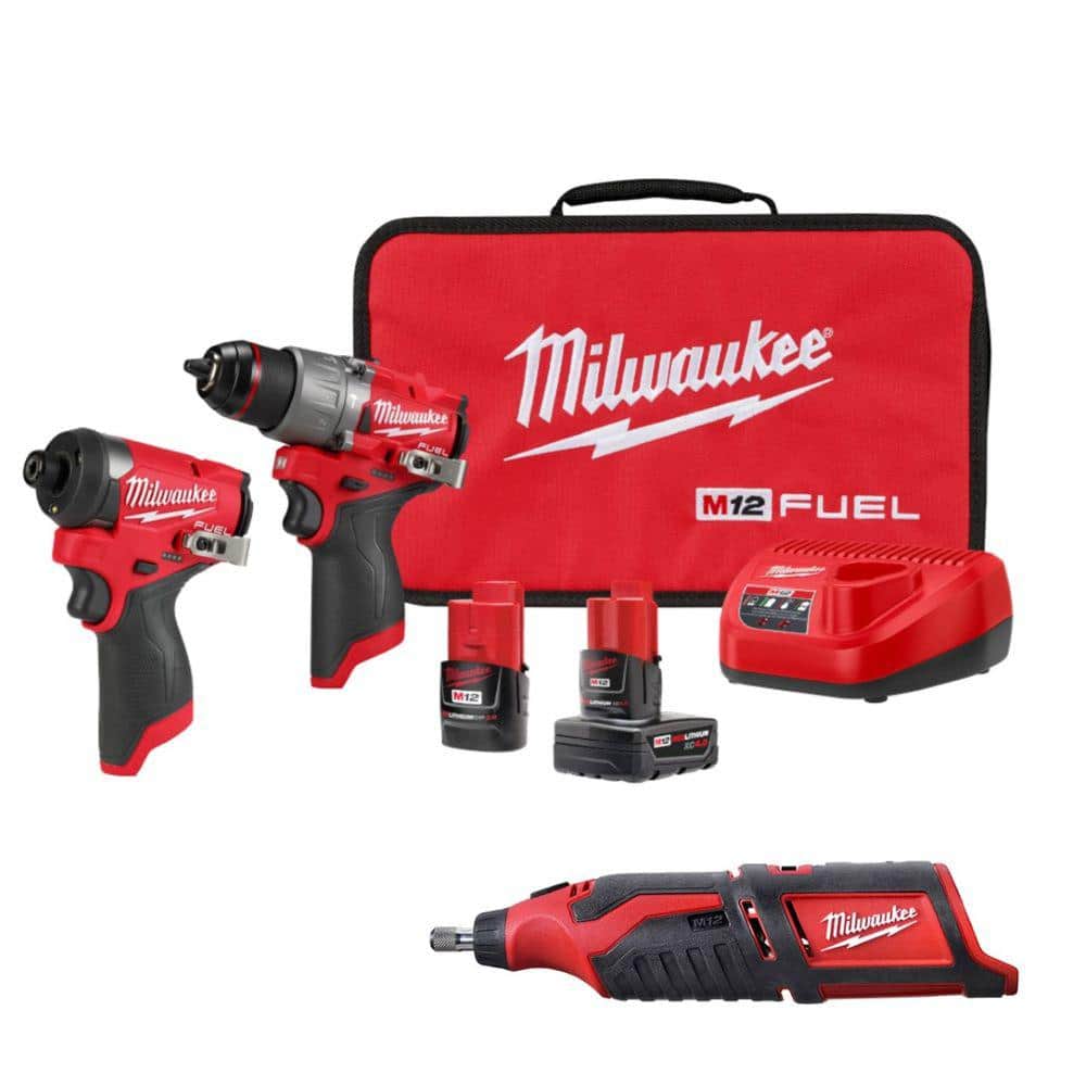 Milwaukee M12 FUEL 12-Volt Lithium-Ion Brushless Cordless Hammer Drill and Impact Driver Combo Kit (2-Tool) with Rotary Tool