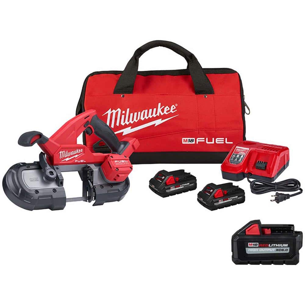 Milwaukee M18 FUEL 18-Volt Lithium-Ion Brushless Cordless Compact Band Saw Kit with (2) 3.0Ah & (1) 6.0Ah High Output Batteries, 3-1/4 in. Capacity