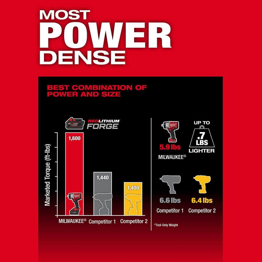 Milwaukee M18 FUEL 18V Lithium‑Ion Brushless Cordless 1/2 in. Impact Wrench Kit with 5.0Ah Battery & FORGE XC 8.0Ah Battery Pack