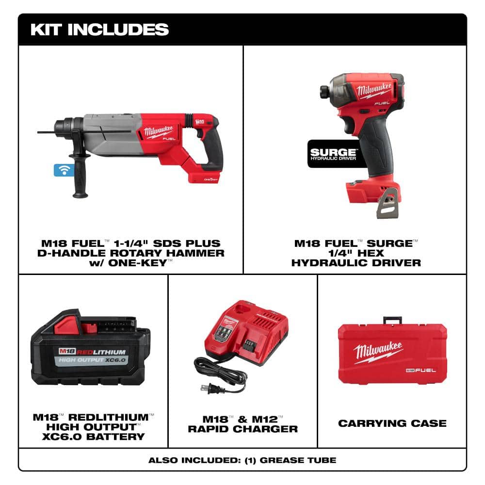 Milwaukee M18 FUEL ONE-KEY 18V Lithium-Ion Brushless Cordless 1-1/4 in. SDS-Plus D-Handle Rotary Hammer Kit with Impact Wrench