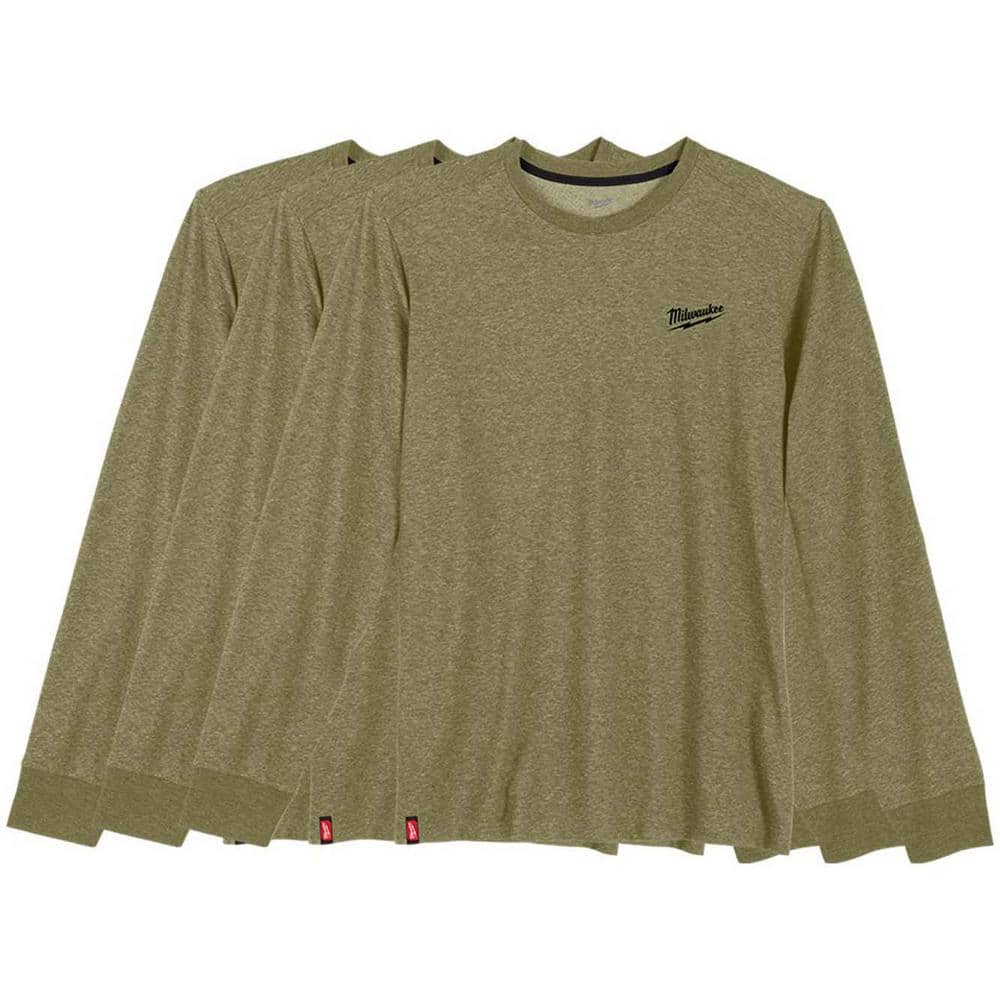 Milwaukee Men's 2X-Large Green Cotton/Polyester Long-Sleeve Hybrid Work T-Shirt (3-Pack)