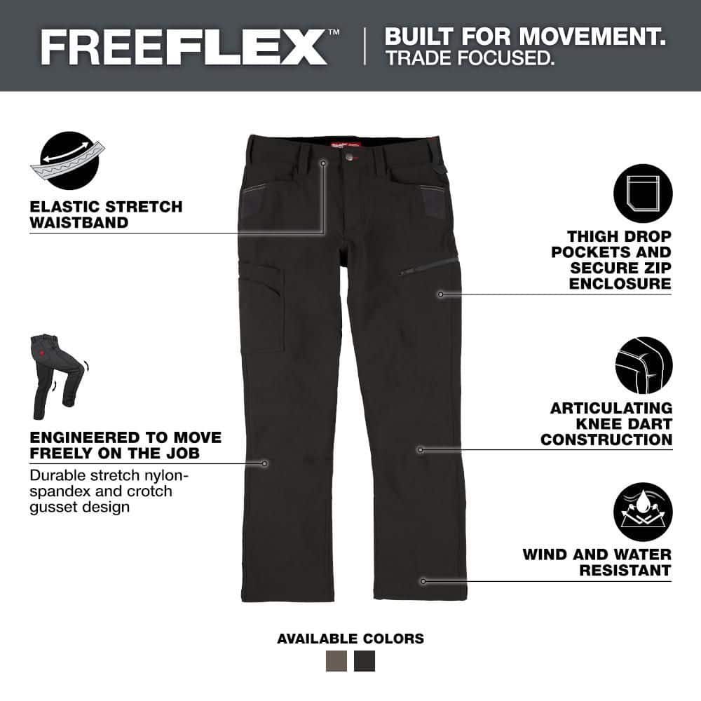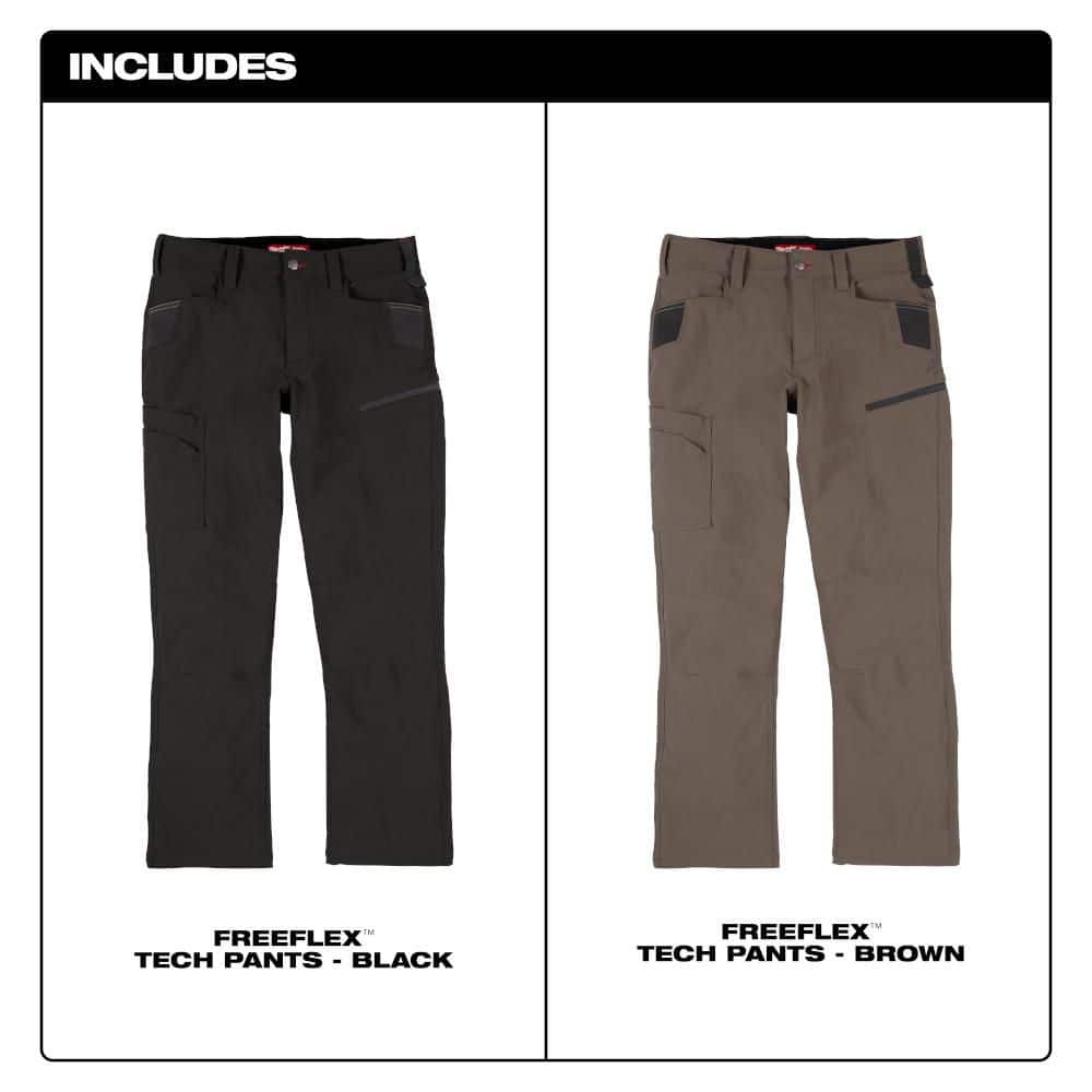 Milwaukee FREEFLEX Men's Tech Work Pants, Black 38x32
