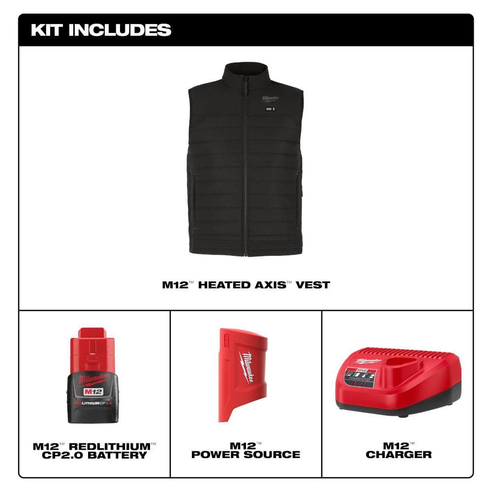 Milwaukee Men's Large M12 12-Volt Lithium-Ion Cordless AXIS Black Heated Vest Kit with (1) 2.0 Ah Battery and Charger