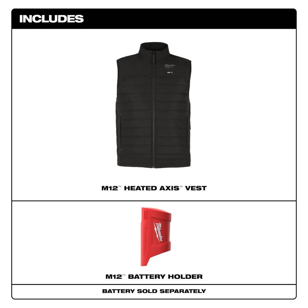 Milwaukee Men's Small M12 12V Lithium-Ion Cordless AXIS Black Heated Vest (Vest Only)