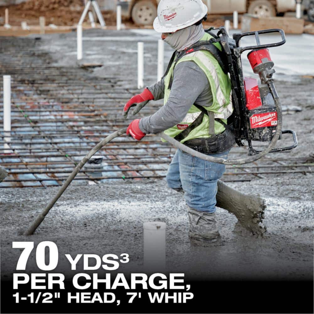 Heavy-duty cordless concrete vibrator paired with Milwaukee’s M18 FUEL hammer drill and impact driver for peak jobsite productivity. Delivers reliable push-button starts, high-frequency consolidation, and zero-emission operation with modular backpack design.