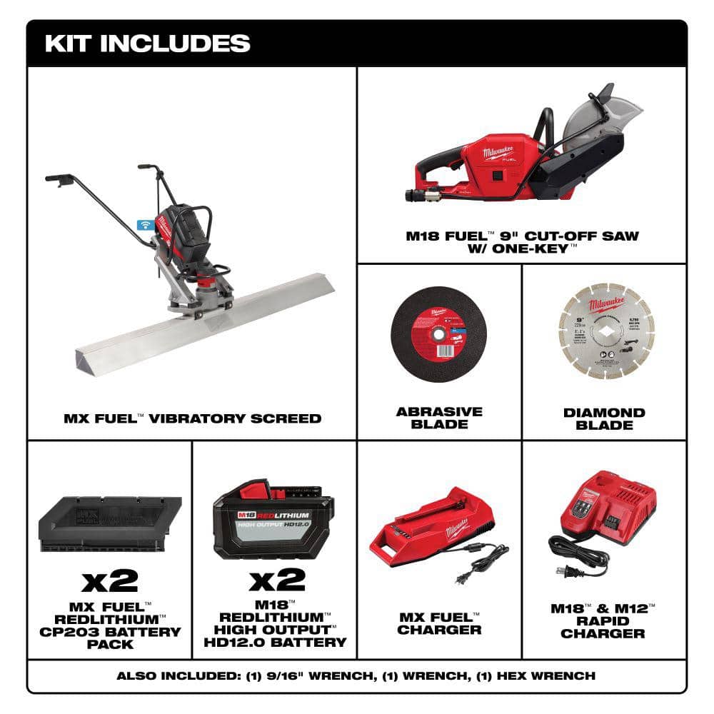 Milwaukee MX FUEL Cordless Vibratory Screed Kit with M18 FUEL ONE-KEY 9 in. Cut-Off Saw