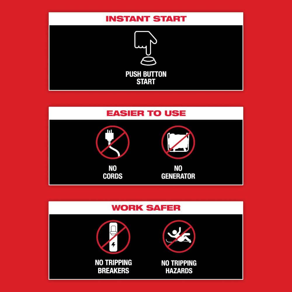 • Cordless Productivity: MX FUEL system eliminates cords and generators for easier, safer setup