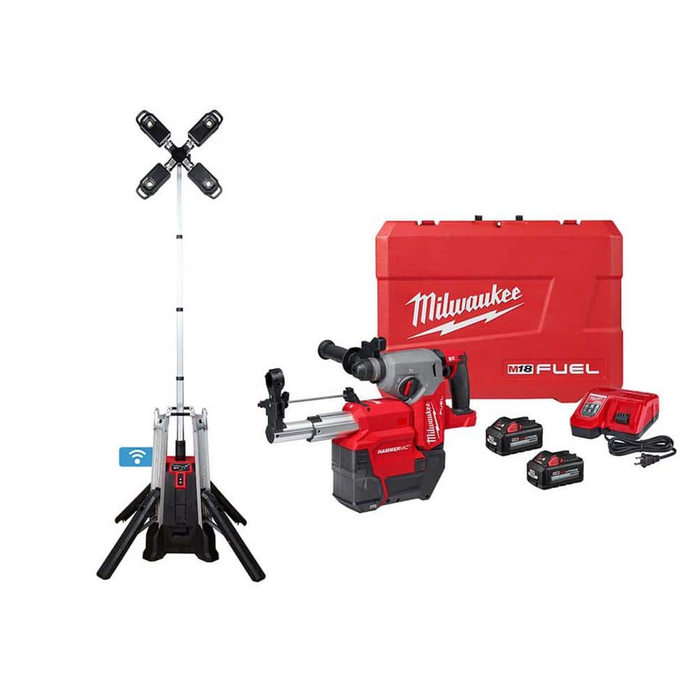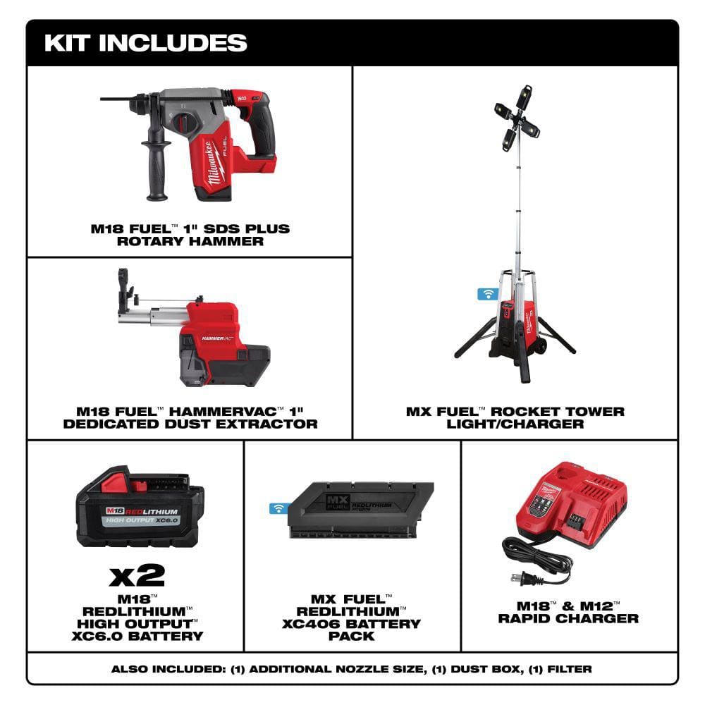 Milwaukee MX FUEL ROCKET Tower Light/Charger with M18 FUEL 1 in. SDS-Plus Rotary Hammer/Dust Extractor Kit