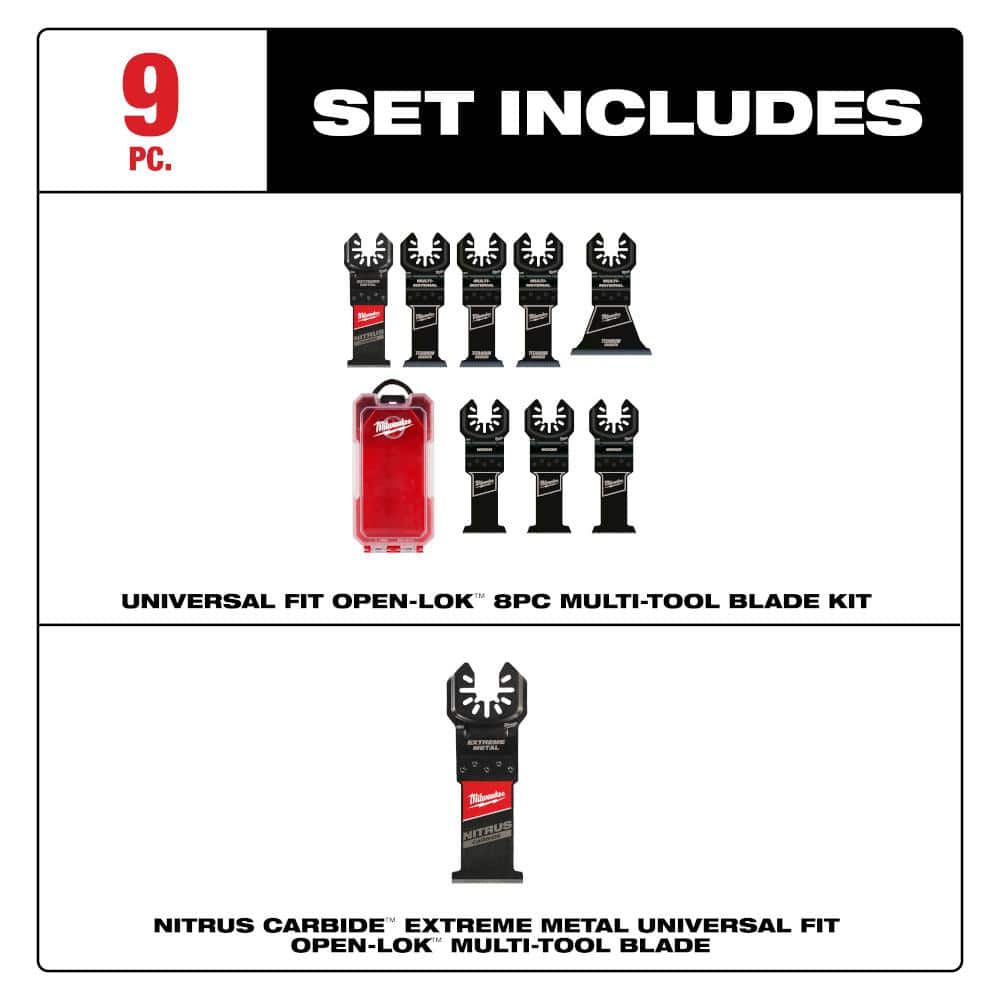 Milwaukee Oscillating Multi-Tool Blade Set, OPEN-LOK, NITRUS CARBIDE & Titanium Charged Bi-Metal (9-Piece)