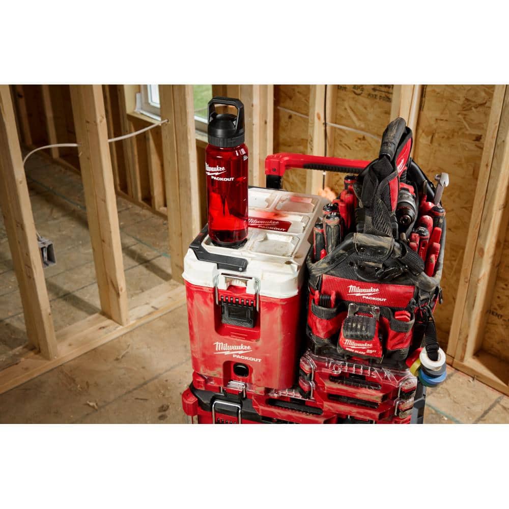 Bold Milwaukee red turns a simple bottle into a purposeful accent—clean, industrial, and undeniably functional. The twist-to-lock PACKOUT base is the hero, creating a seamless visual and practical link with your storage stack. Style it atop a PACKOUT cooler or organizer for a cohesive, high-utility vignette in the shop or garage. It’s the kind of everyday object that elevates the workspace while delivering the reliability of luxurious living.