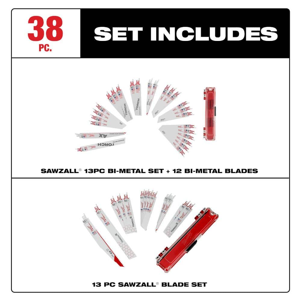Milwaukee 38‑Piece SAWZALL Bi‑Metal Reciprocating Saw Blade Set