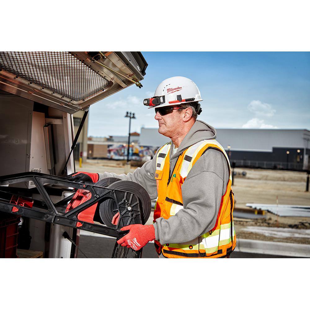These tinted safety glasses sharpen a workspace with their athletic silhouette and midnight lenses, bringing a modern, utilitarian polish to any jobsite. The streamlined black frame with Milwaukee’s signature red accents adds a bold, professional touch. Style them with a crisp hi‑vis vest and matte-black hard hat for a cohesive, performance-driven look. Practical yet refined, they’re an effortless essential for elevated, everyday protection.